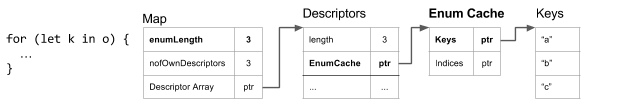 - Each descriptor array can have an EnumCache listing only the enumerable named keys, not indexed property names.