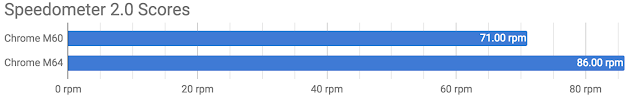 Comparison of Speedometer 2 scores between Chrome 60 and 64